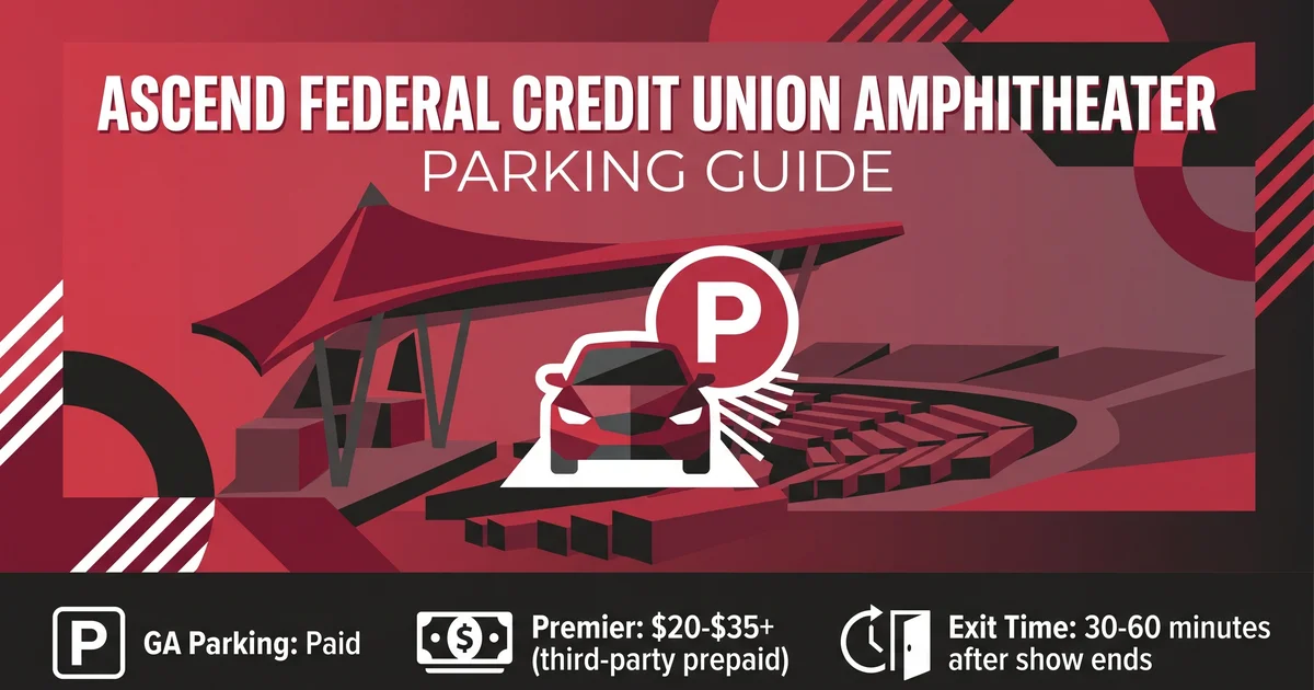 Ascend Amphitheater does not include general parking with your concert ticket, there is no on-site GA lot, and every driver must arrange parking independently.
